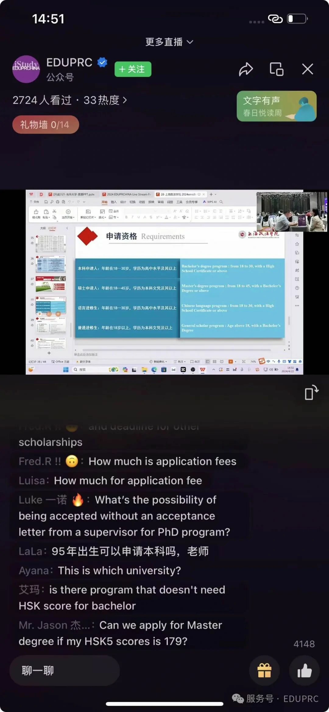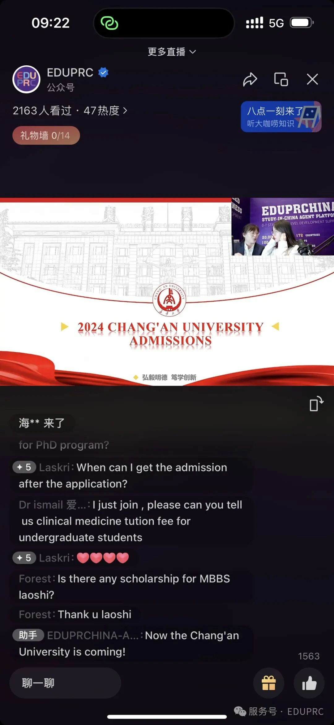 The live stream platform is our WeChat Channels-EDUPRC. You can watch the live stream directly on WeChat.