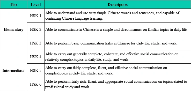 Proficiency Descriptors for the New HSK (Levels 1-6)