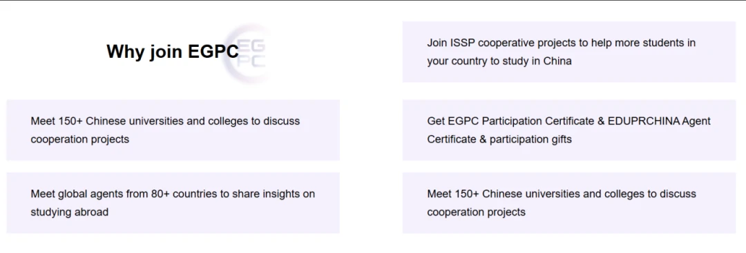 To participate in EGPC, you shloud be an agent of EDUPRCHINA.